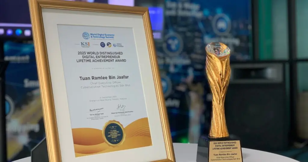 Our CEO, Tuan Hj. Ramlee Bin Jaafar, was honored with the prestigious 2023 World Distinguished Digital Entrepreneur Lifetime Achievement Award, a recognition reserved for individuals whose work has shaped the digital landscape over decades.